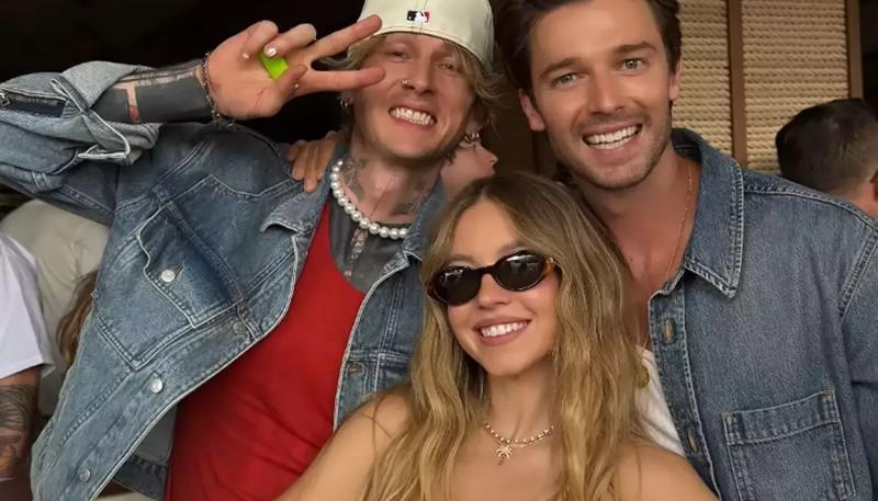 Сидни Суини позировала между двумя звездами, она улыбалась, уперев руки в бока, в то время как 35-летний MGK слева от нее демонстрирует знак мира, а 31-летний Шварценеггер справа просто улыбается. На актрисе была надета обтягивающая маяка, которая подчеркивала ее прекрасные физические данные.